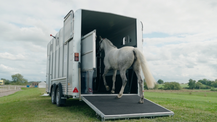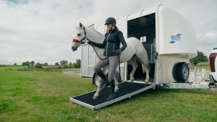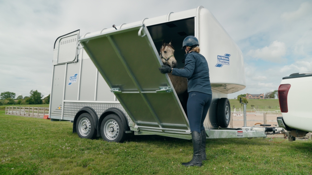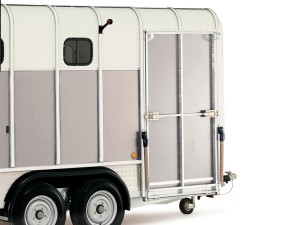 La amplia rampa de descarga delantera, que viene de serie, hace que este modelo sea único y muy útil tanto para el caballo como para el propietario.
