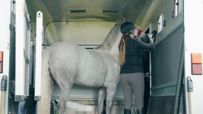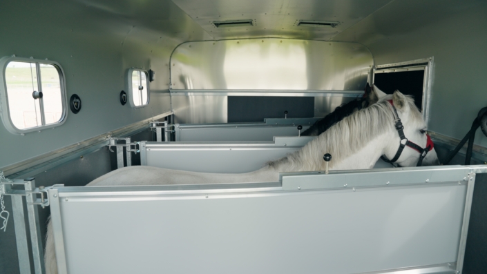 Las ventanas correderas y las trampillas de ventilación del techo proporcionan un entorno cómodo y seguro para su caballo, garantizando mucha luz y aire fresco. La goma del suelo rayada proporciona un confort adicional.