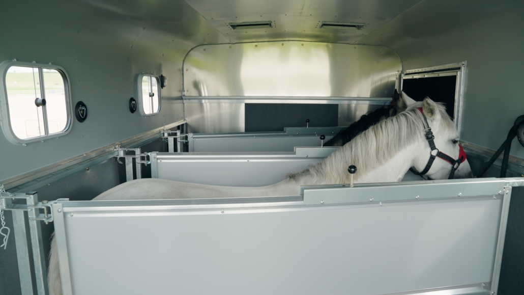 Al ofrecer una anchura adicional al remolque, el sistema de partición telescópica permite hasta cinco compartimentos para ponis.