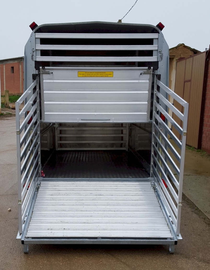 El sistema EasyLoad de Ifor Williams revoluciona la manera de cargar y descargar el remolque, ofreciendo un doble piso plegable integrado de fábrica. Esto facilita la carga en la plataforma superior, eliminando la necesidad de manipular rampas adicionales ni mover al ganado.